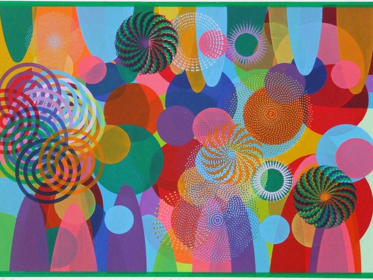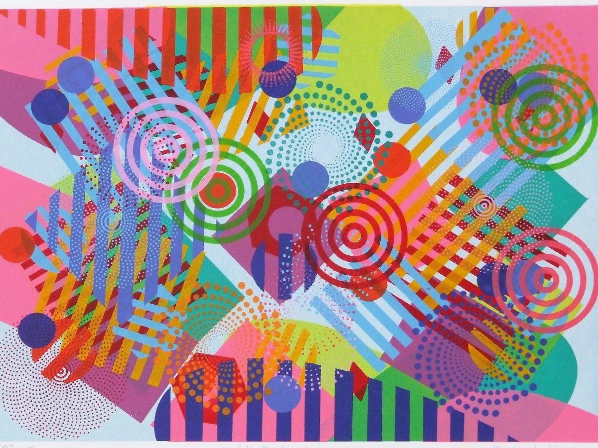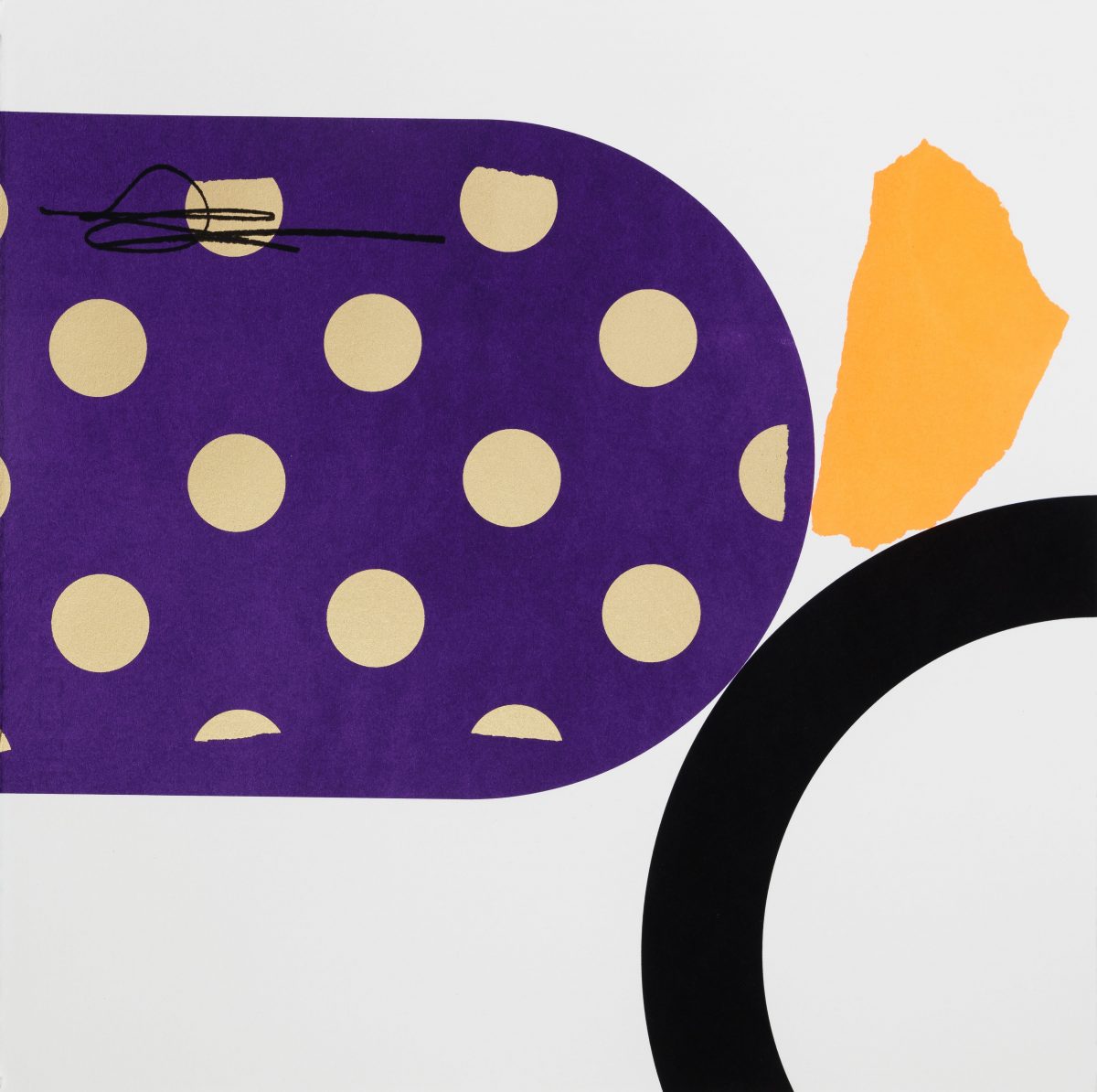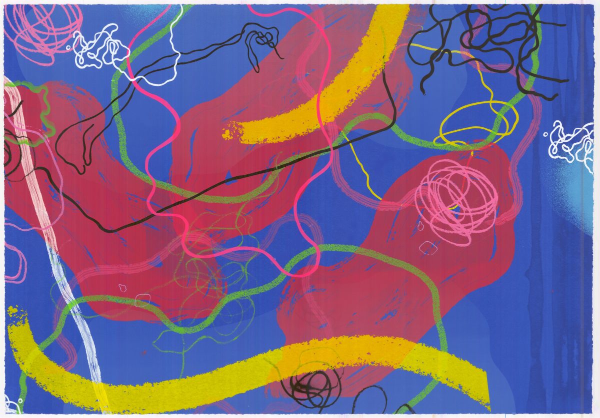 A range of individualised colourful gestures distinguish Aoife Scott’s screenprints. Each painterly mark is placed judiciously across an expansive flatly coloured background. There is a musical quality present; each colourful element is choreographed to augment the other. – Dr Angela Griffith, Trinity College Dublin.