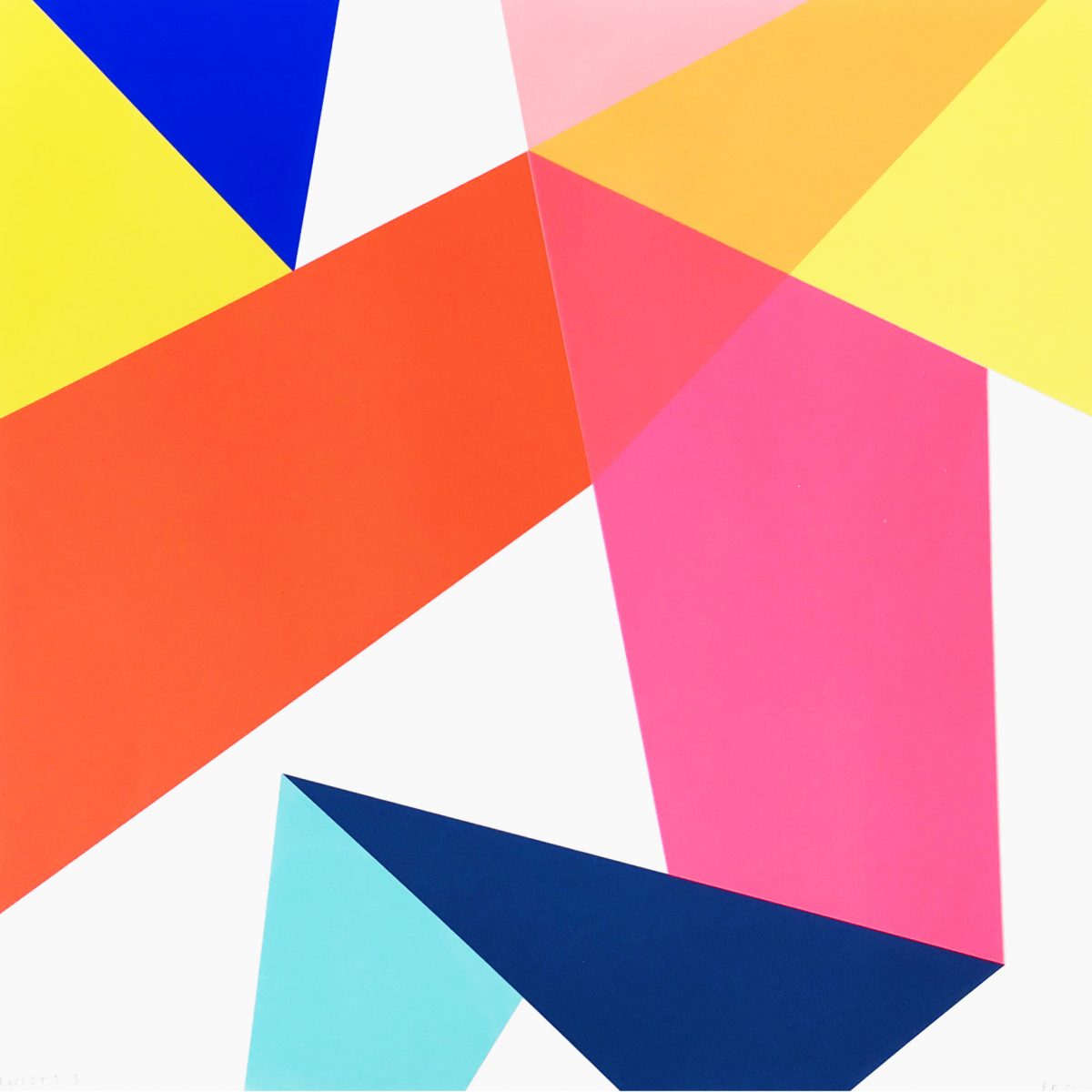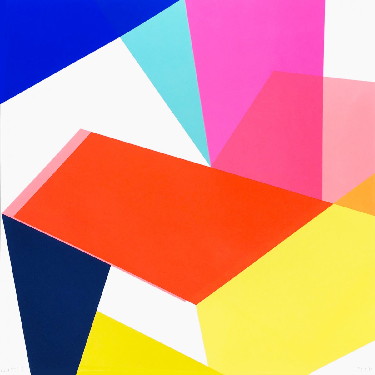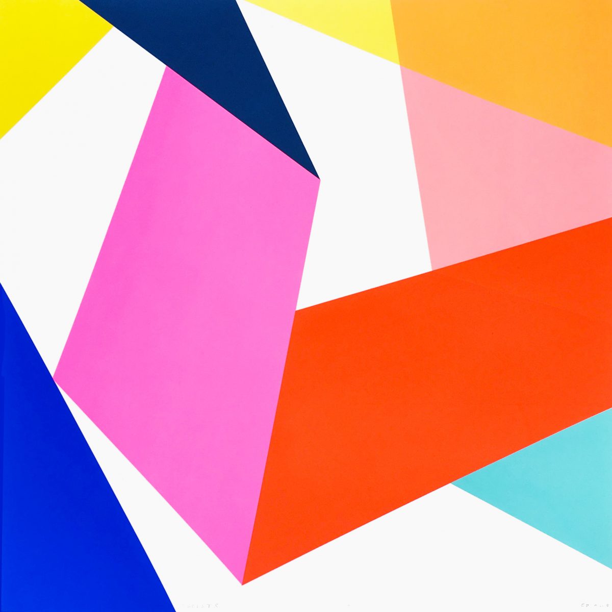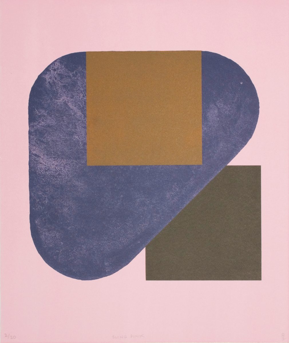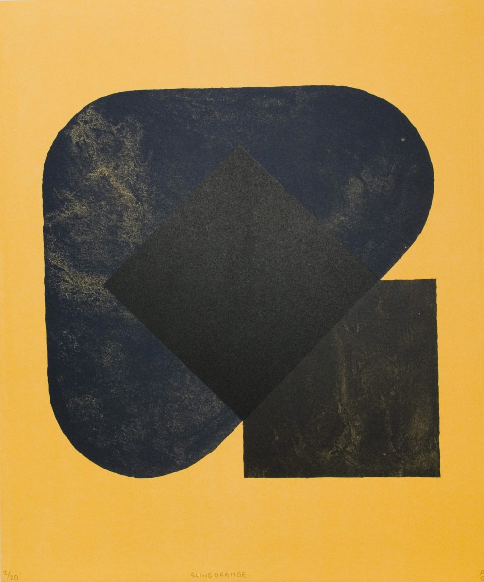 Frea Buckler’s work comprises flat, unmodulated, hard-edged expanses of colour. Her prints have a monumental sculptural quality that suggests folded forms. The juxtaposition of each element is dynamic, yet balanced and controlled.