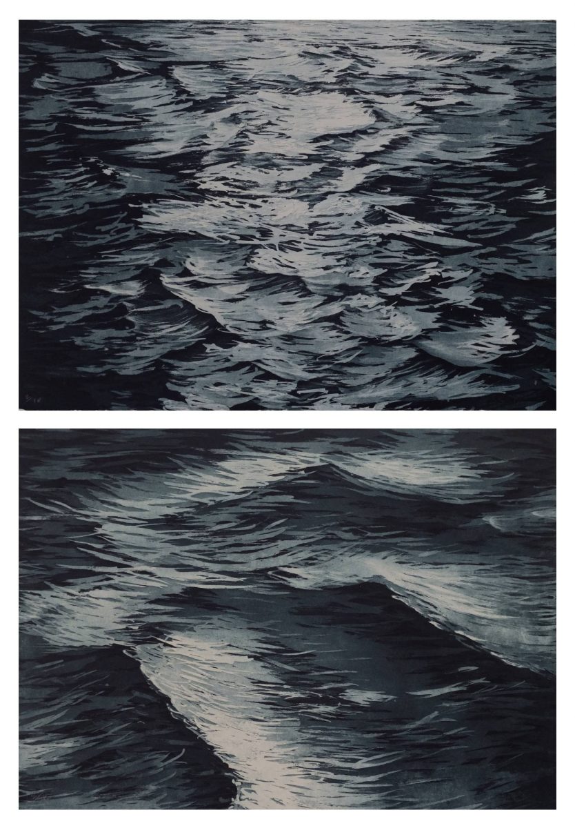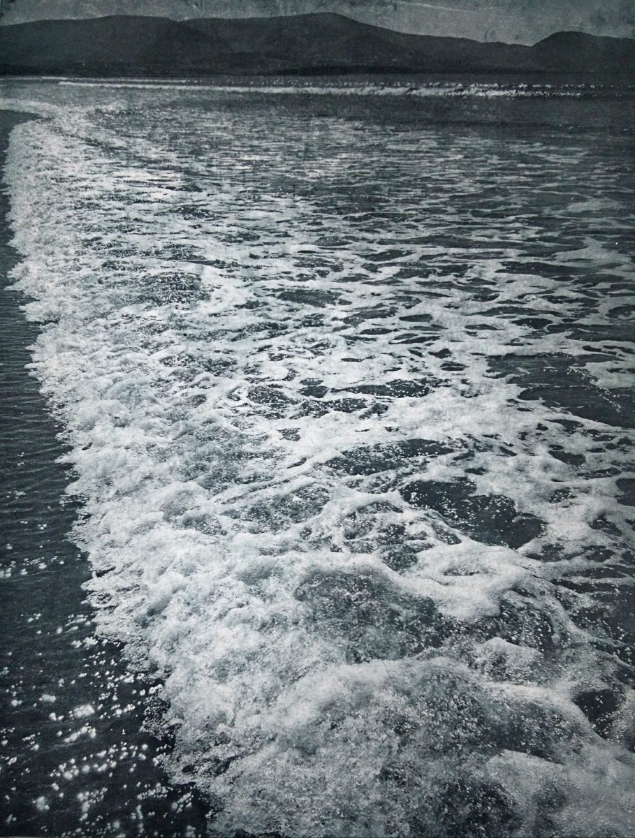 As in history, the landscape continues to engage Irish artists. For some they relish in its details, Josie McMorrin describes a West of Ireland view through a myriad of finely etched lines. Hilary Kinahan essentialises forms within the landscape, combing abstracted elements with calligraphic mark-making and a subjective colour. Angela Gilmour in her series of black white photo-etched images of the sea shore at Baile an Sceilg evoke memoires of sensory experiences, sight, sound, touch, smell. Deirdre McKenna, abandoning the reassurance of dry land, focuses solely on the mesmeric rhythms of the rise and fall of the sea surface.