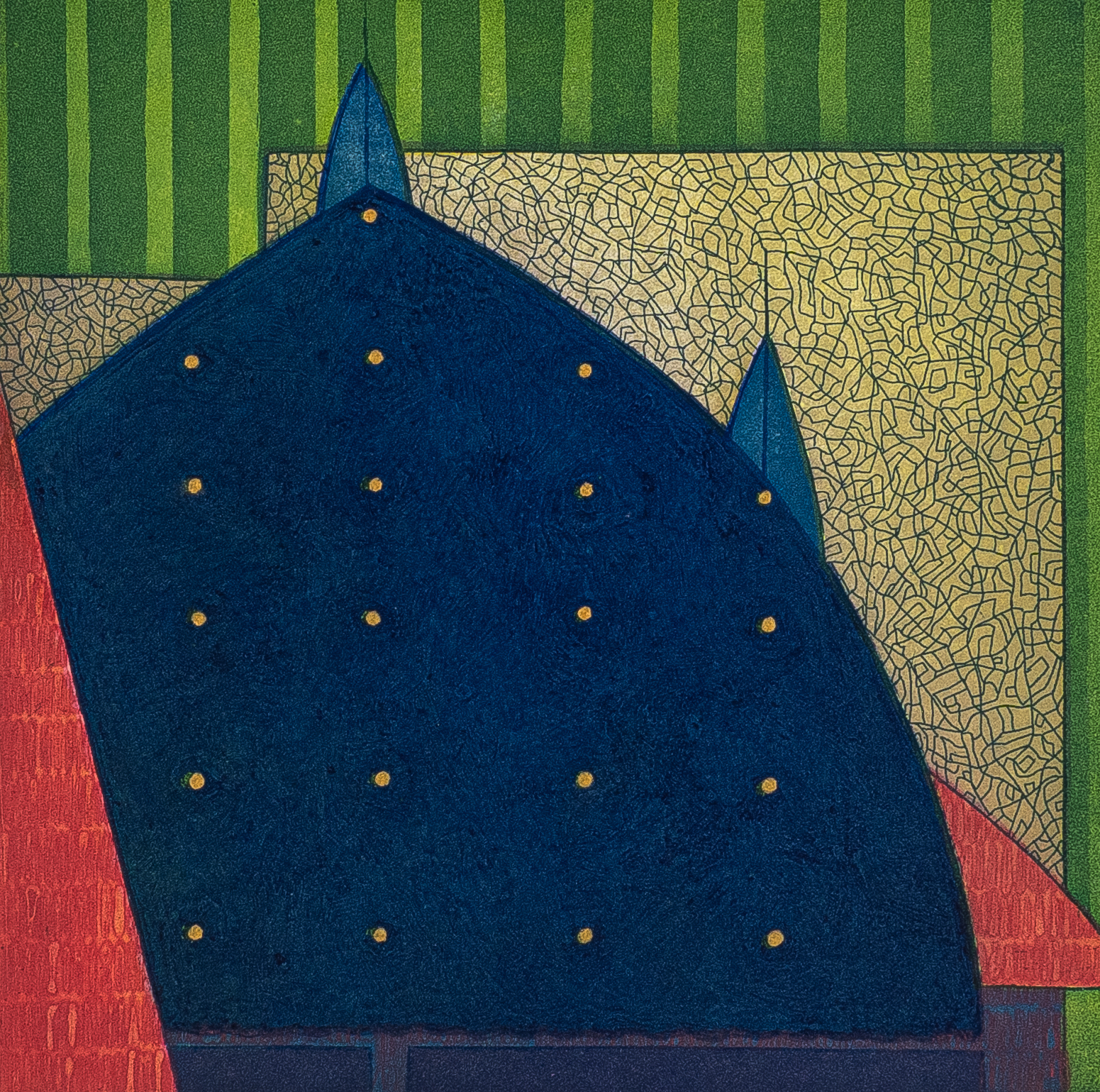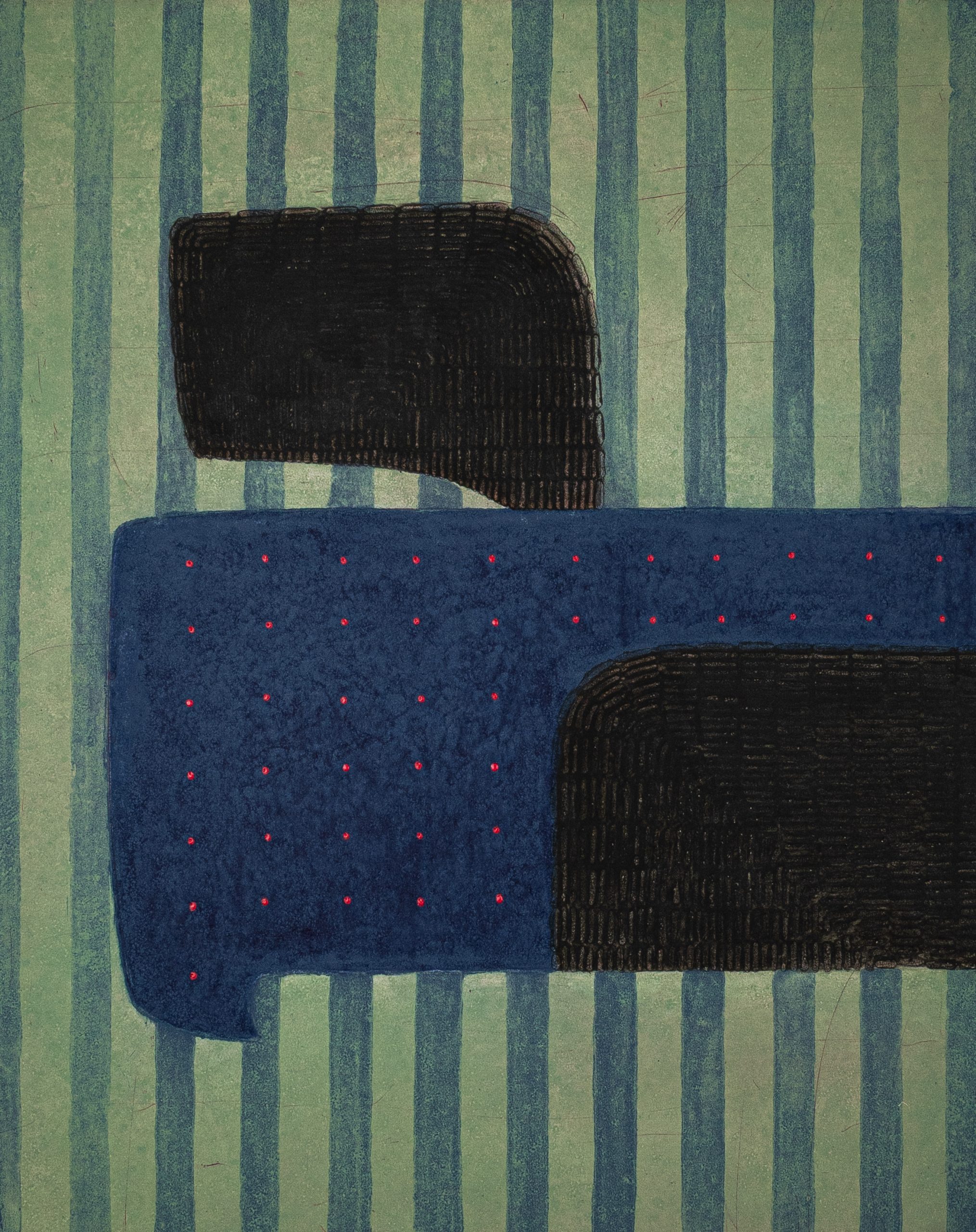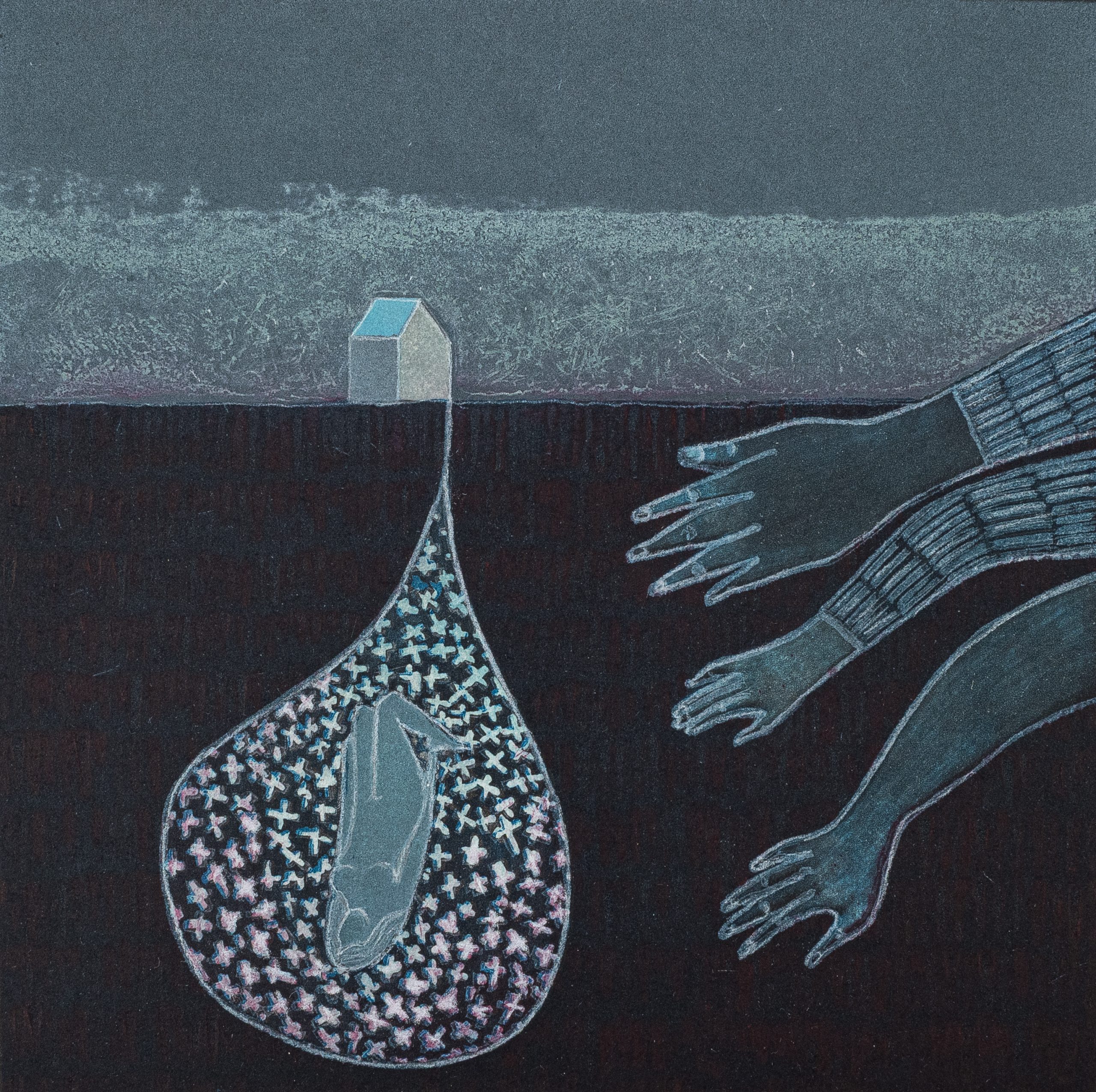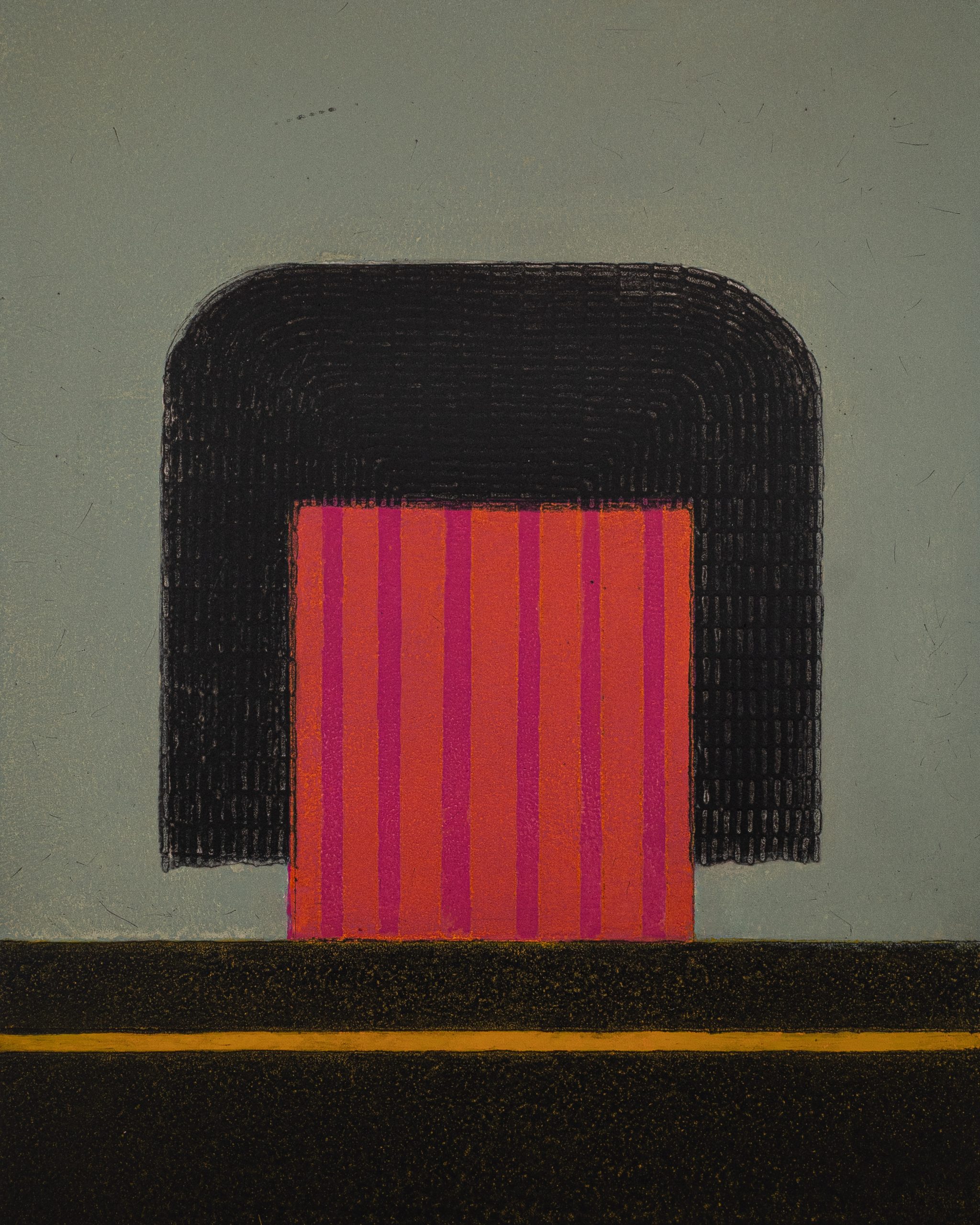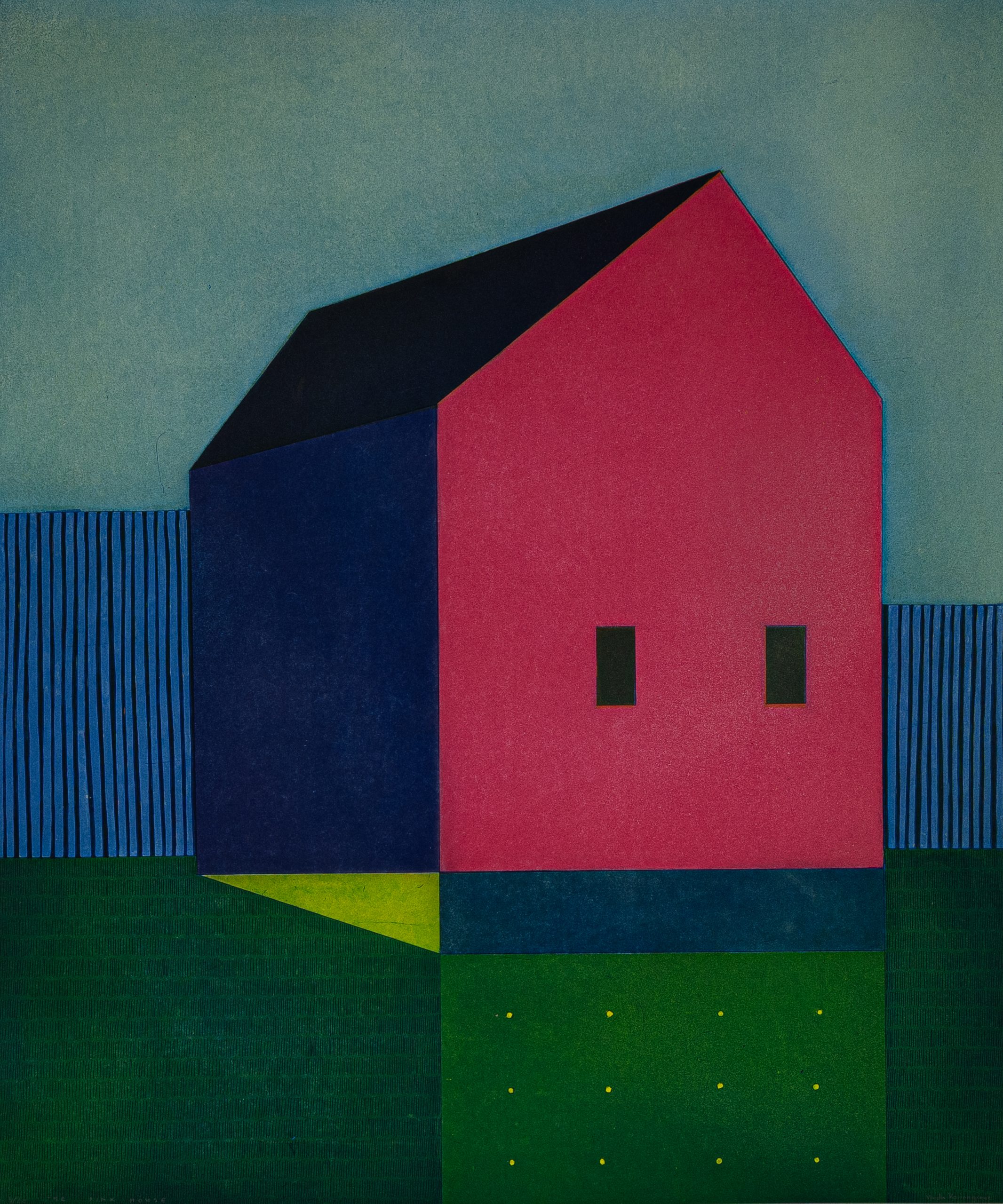 Vaida Varnagienė’s prints are often punctuated with brilliant colour, to explore the tension between home, displacement, and the in-between. In works such as Forest House, Pink House, and In Between, she traces architecture and landscape, real and imagined, with measured lines and layered colour. Her imagery registers memory as much as place, capturing the subtle pull of leaving, returning, and inhabiting spaces suspended between reality, recollection, and the imagined.